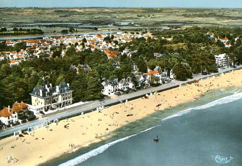 Sur ce cliché panoramique de la plage du Pouliguen, on peut voir à chaque extrémité les deux villas ayant apartenues à la famille de MONTAIGU.