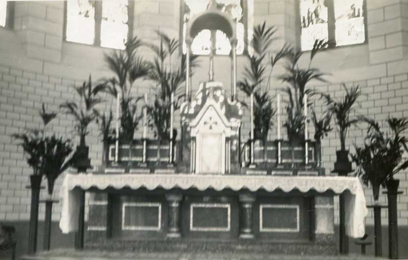 1er juillet 1935 : fin des travaux. Il y a trois autels provisoires sur les cinq prévus. Il n'y a pas de chaire, les sermons sont donnés du chœur surélevé. 300 chaises sont déjà arrivées.